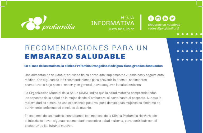 Hoja Informativa Clínica Profamilia Herrera: Recomendaciones para un embarazo saludable