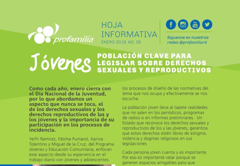 Hoja Informativa No. 26: jóvenes población clave para legislar sobre derechos sexuales y reproductivos